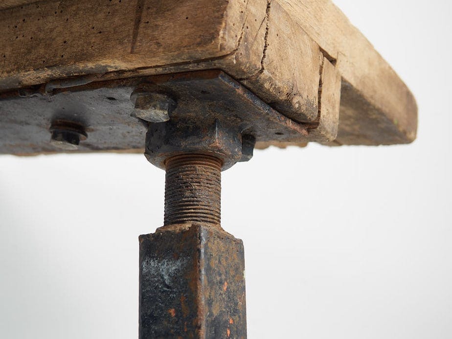 Table de travail ancienne en bois massif et en fer (vers 1920).