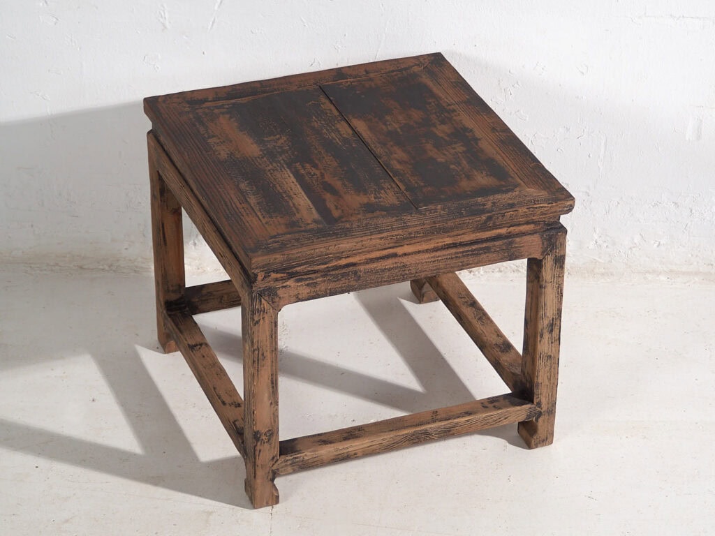 Chaque table d’appoint carrée est unique, avec ses propres imperfections et marques du temps.