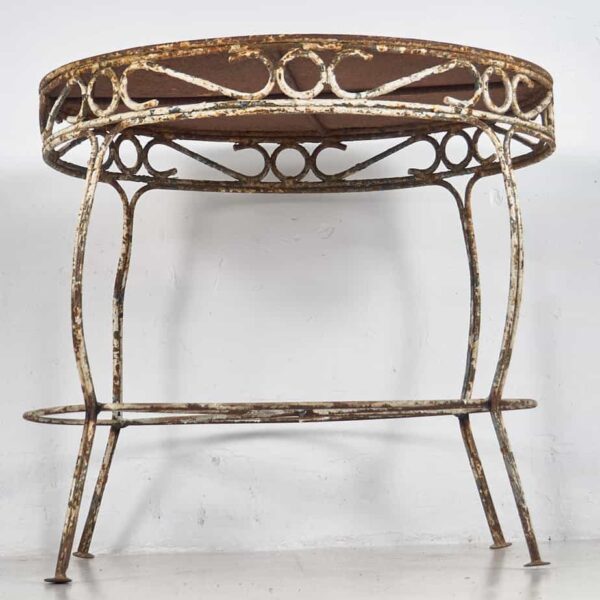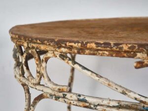 - Sa patine blanche provient de la peinture d’origine et sa couleur rouille s’est développée au fil des ans.