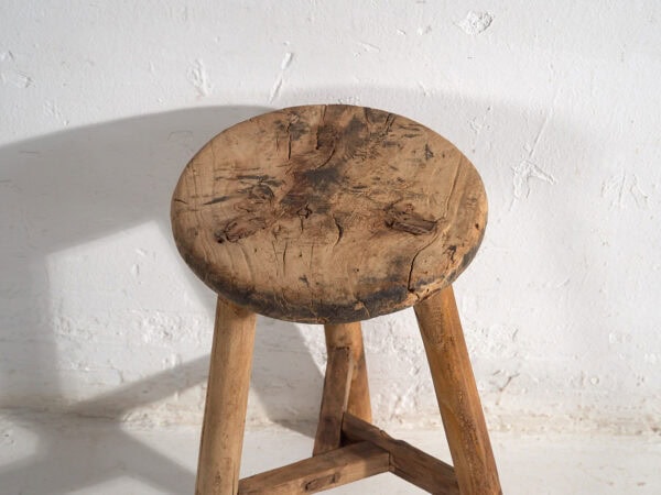 Ancien tabouret en bois massif (c.1900)