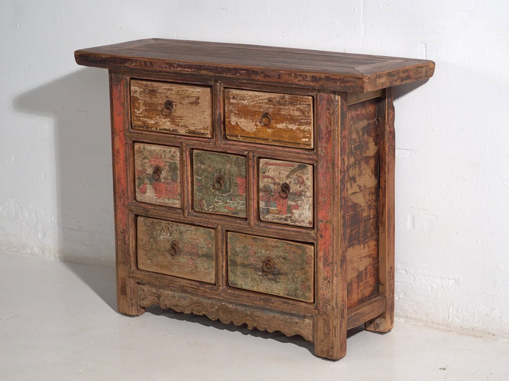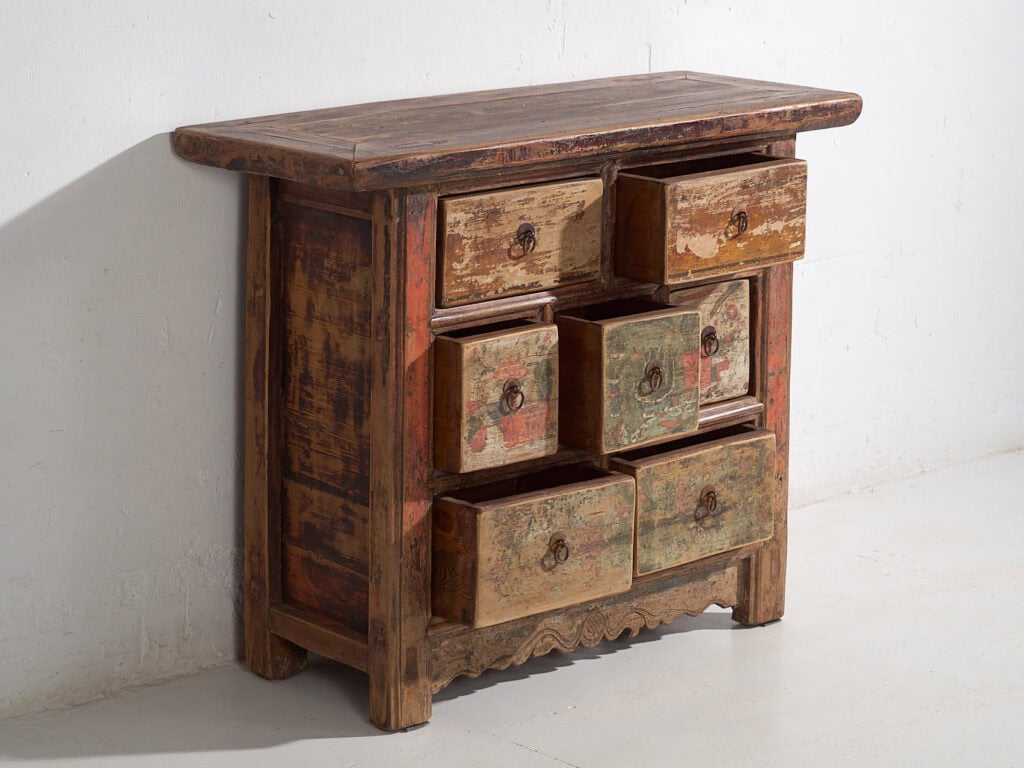 Dale un punto de originalidad a tu casa con una pieza única, que se fusiona con el estilo contemporáneo aportando personalidad a tu casa. Este aparador asiático antiguo puede combinarlo con alguna de nuestras sillas antiguas o con nuestros bancos disponibles.