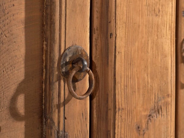 - Sus tiradores son los originales, tan antiguos como el mismo mueble. En general, es difícil encontrar muebles antiguos que conserven los tiradores originales ya que los tiradores metálicos se solían revender en momentos de necesidad económica de la familia.