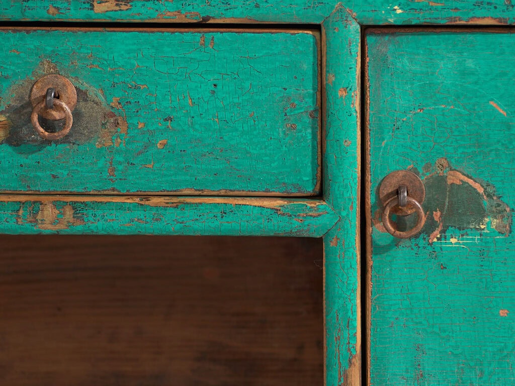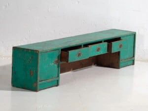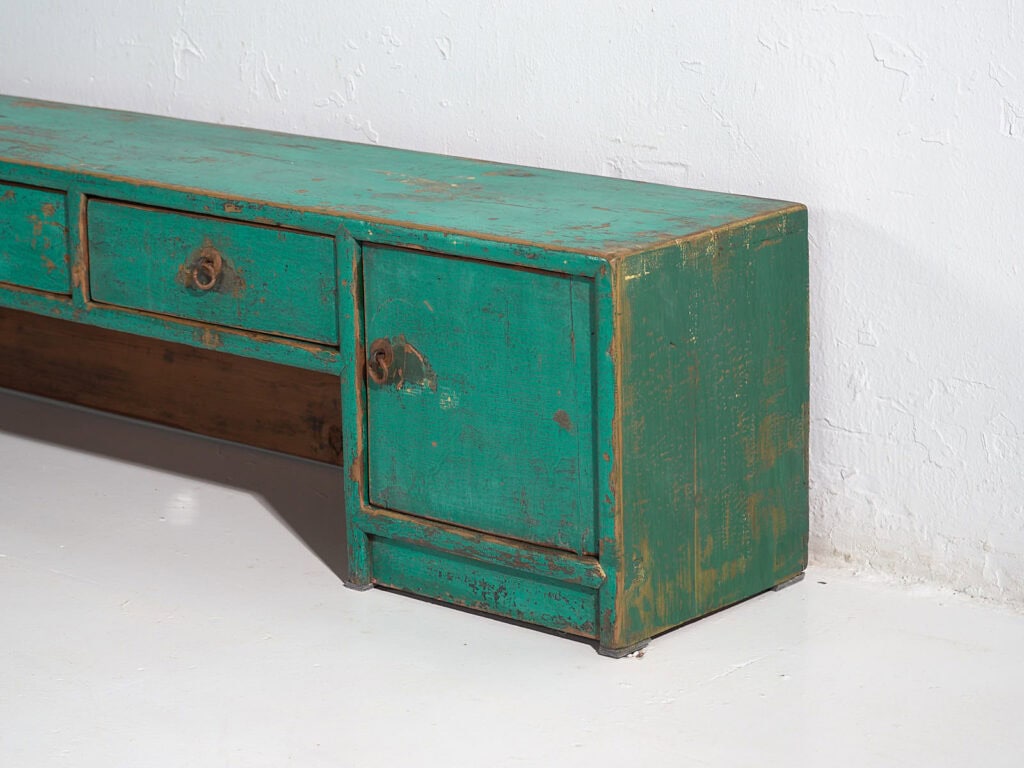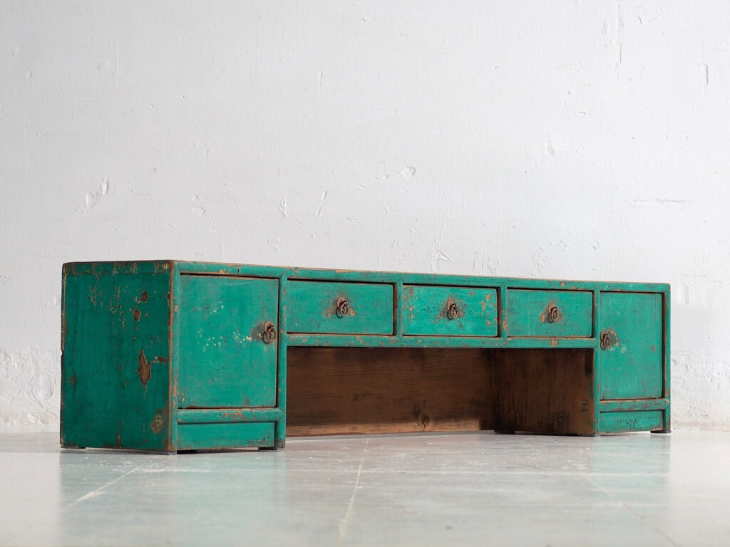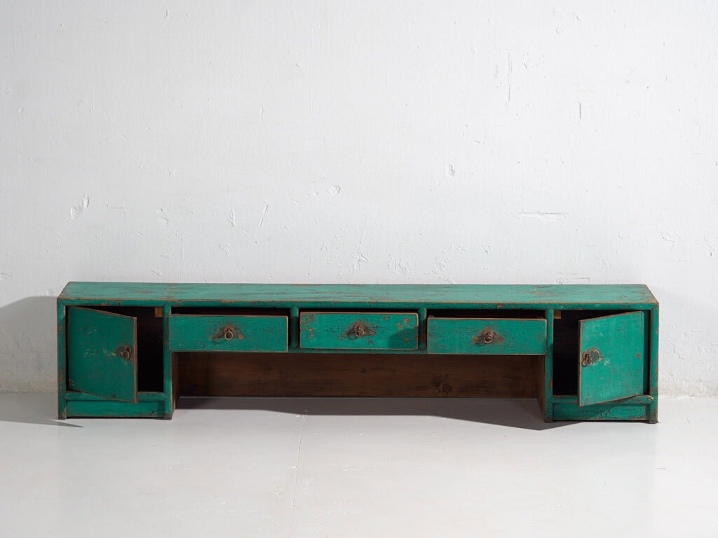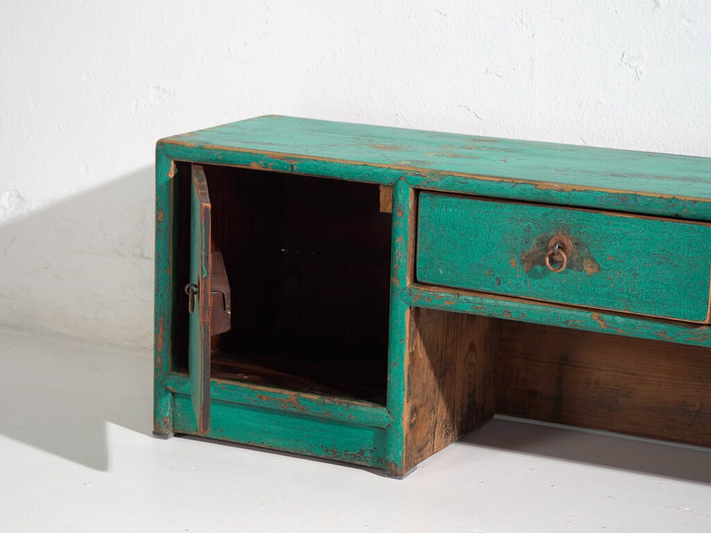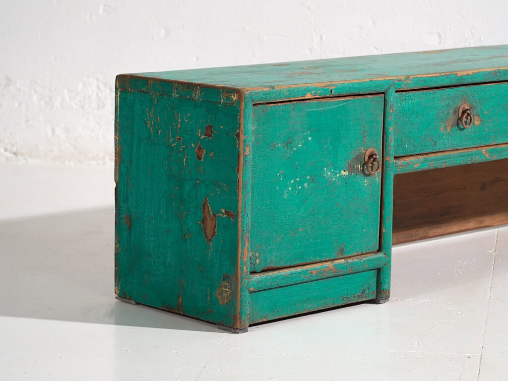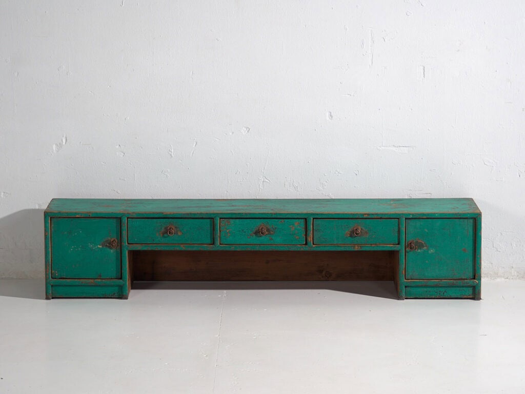Mueble TV oriental antiguo de color verde turquesa (c.1900)