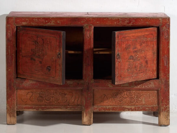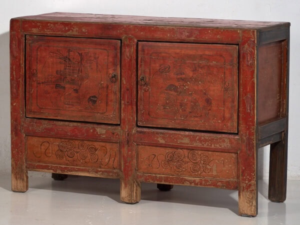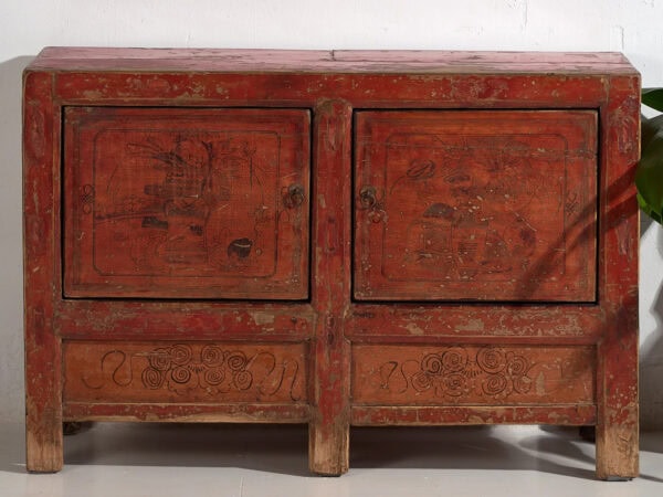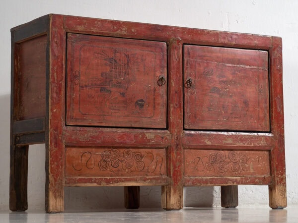 Pequeño aparador antiguo de color rojo (c.1920) #4