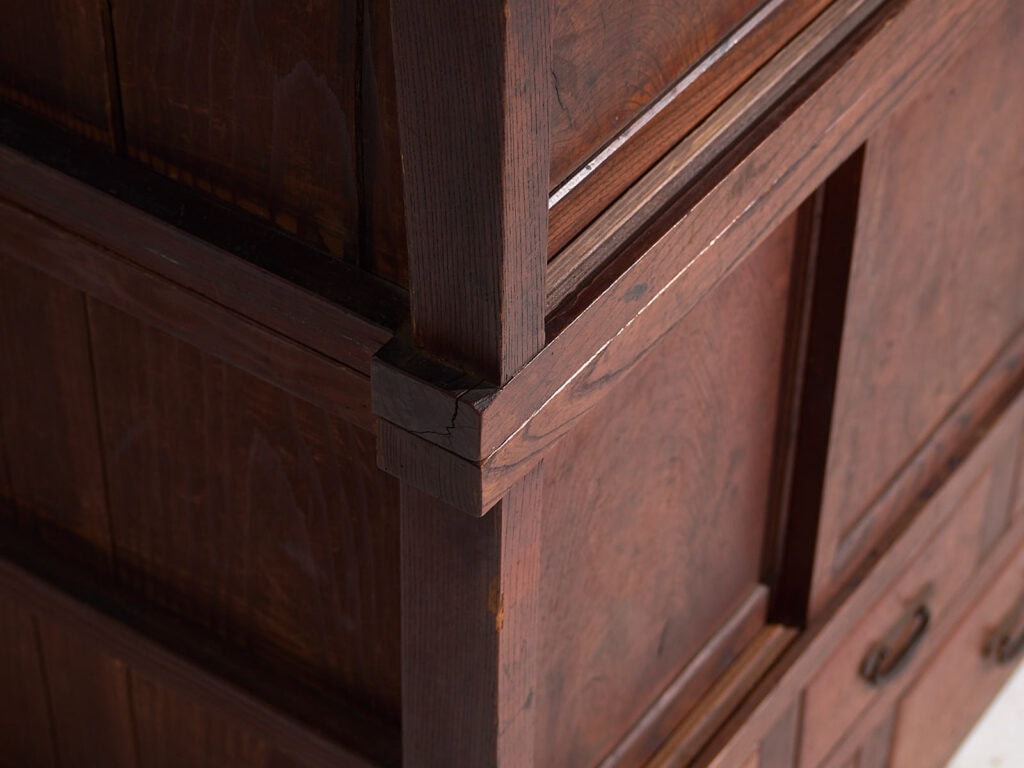 Armario japonés Tansu original, realizado durante el periodo Taishō – Shōwa temprano, una etapa en la que el mobiliario tradicional japonés evoluciona hacia formas más estructuradas y funcionales, pensadas para el uso cotidiano y la organización del espacio doméstico.