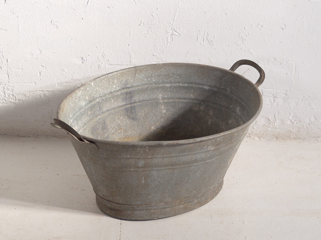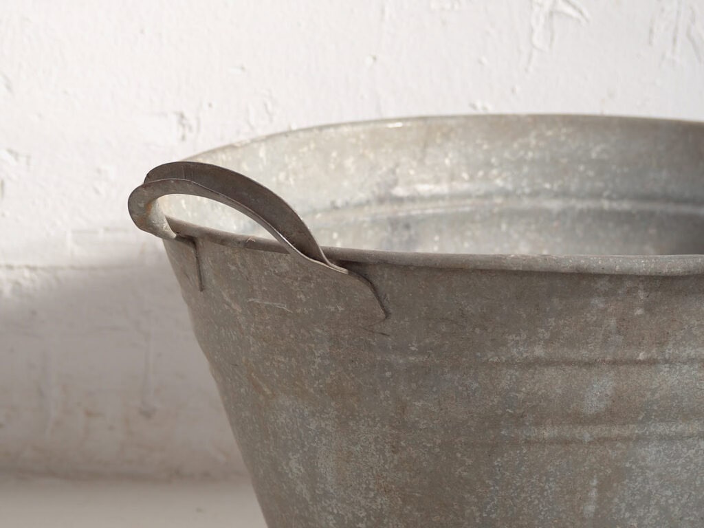 Barreño antiguo de acero galvanizado (España, c.1920).
