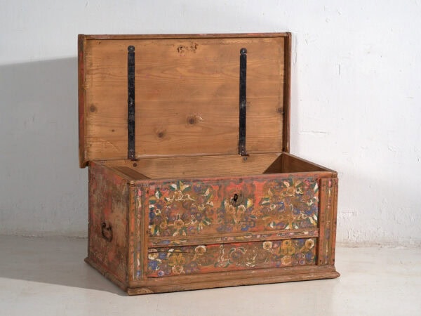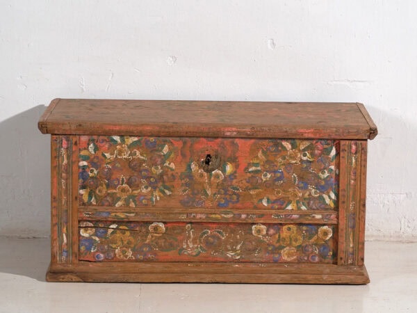 Antiguo baúl pintado con motivos florales (c.1920)