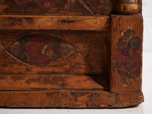 - Su espectacular trabajo artesanal reflejado en su tallado geométrico y en las pinturas de motivos florales.