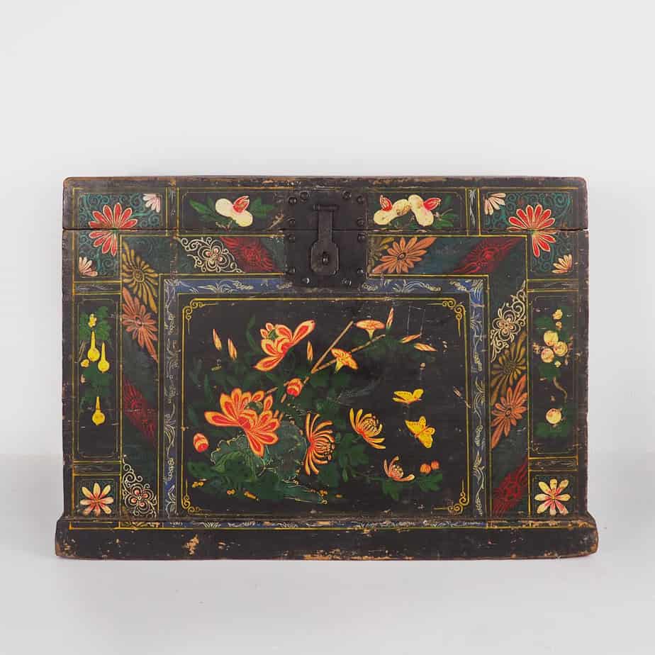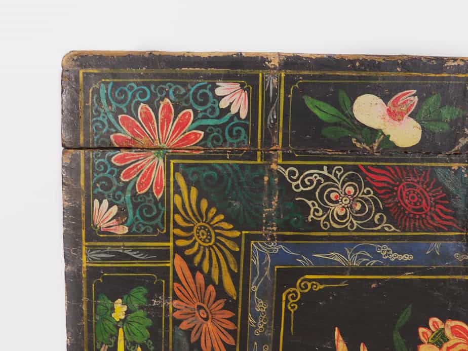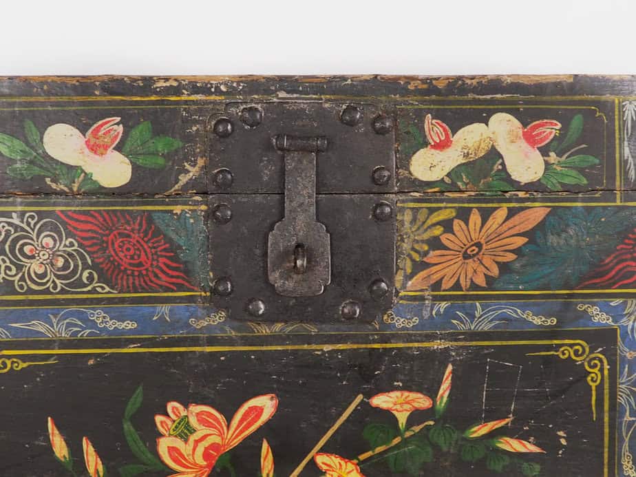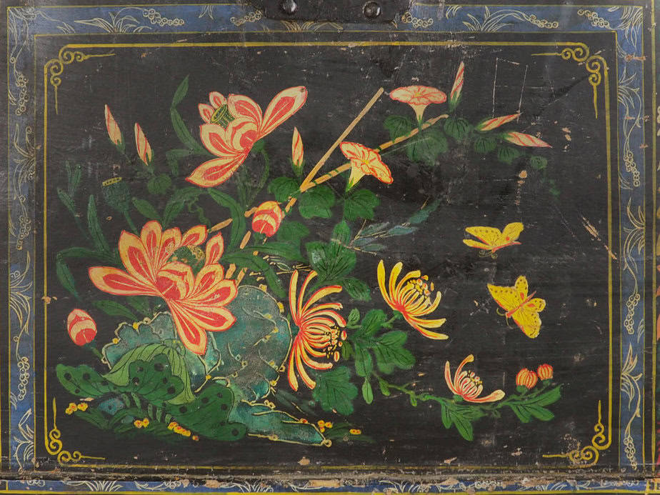 Baúl de ópera chino antiguo con ilustraciones florales (China, c.1900) #2