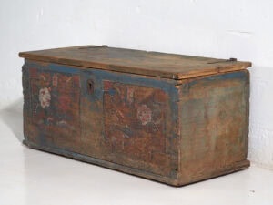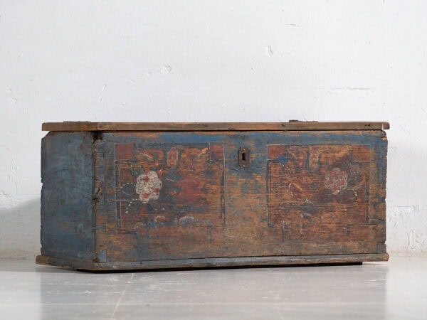 Baúl pequeño antiguo con motivos florales (c.1900)