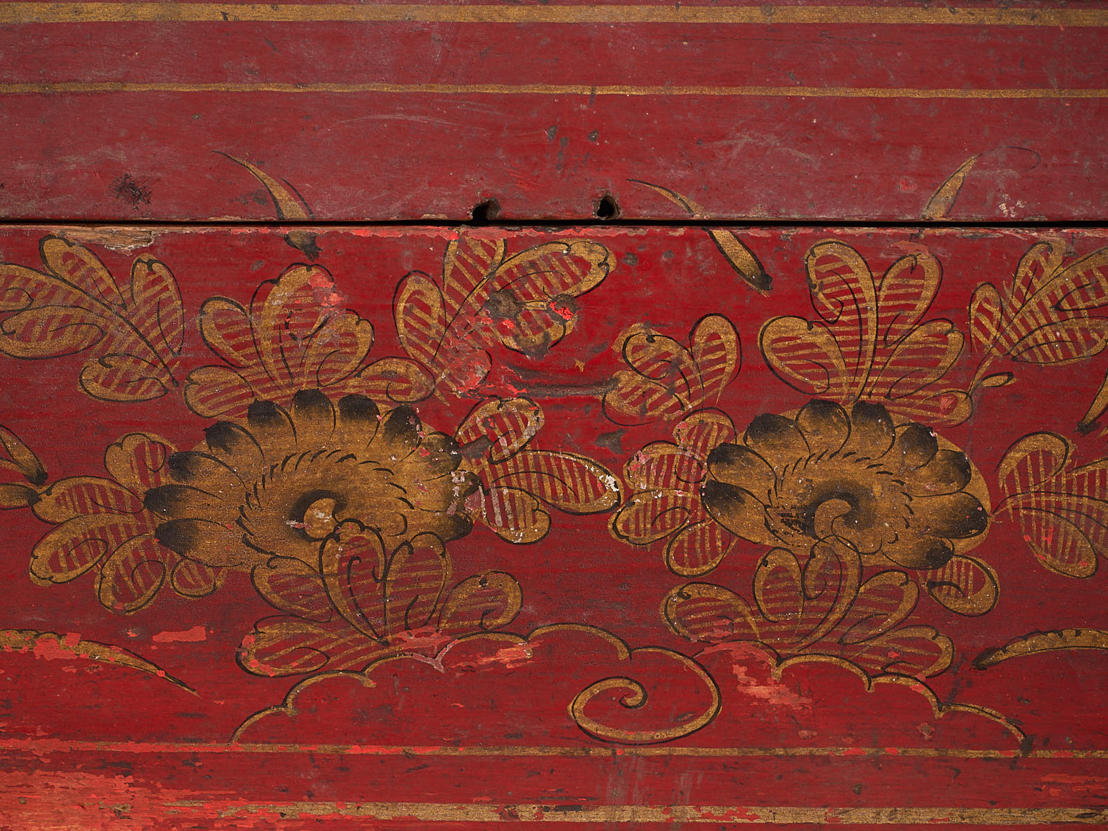Dale un punto de originalidad a tu casa con esta pieza única, que se fusiona con el estilo contemporáneo aportando personalidad a tu casa. Este cofre rojo antiguo puede combinarlo con alguno de nuestros jarrones o con nuestros bancos antiguos disponibles.