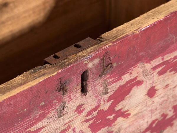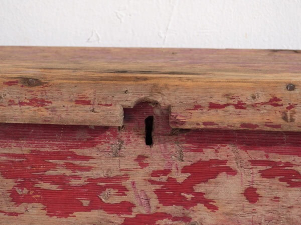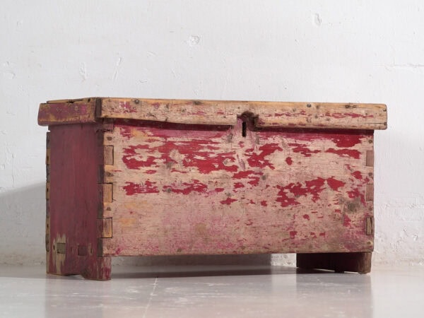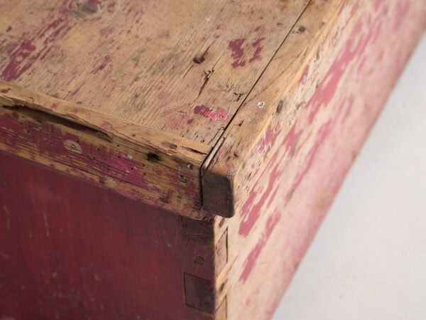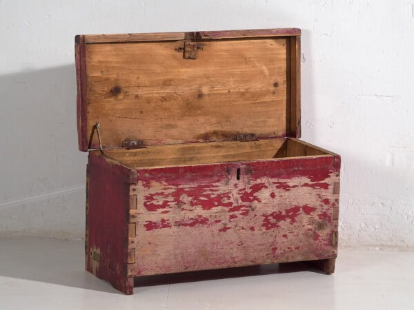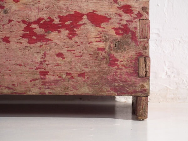 Cofre rojo antiguo de madera maciza (c.1920) #15