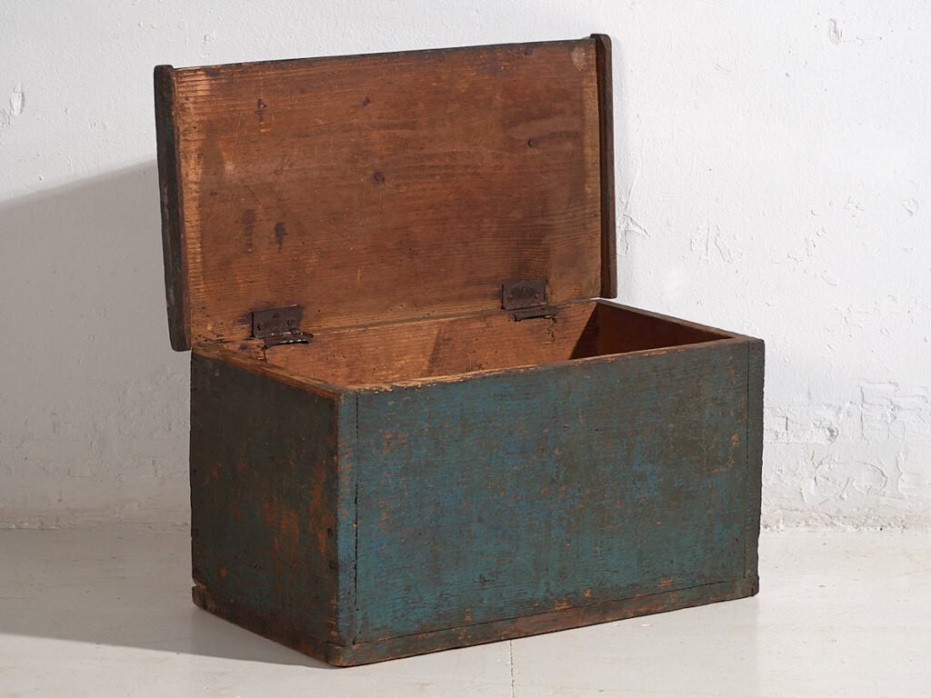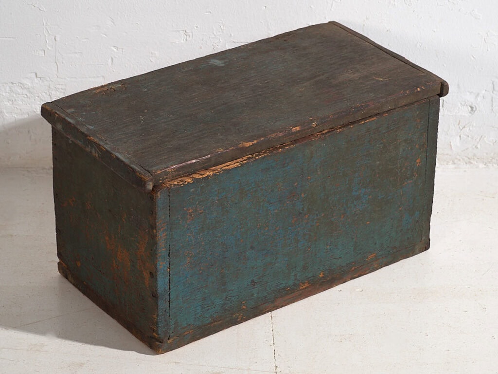 Pequeño baúl antiguo con pátina de color azul cobalto (c.1920)