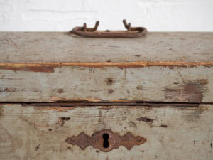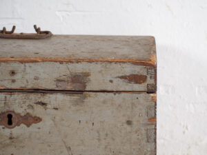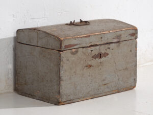 Dale un punto de originalidad a tu casa con esta pieza única, que se fusiona con el estilo contemporáneo aportando personalidad a tu casa. Este pequeño cofre gris antiguo puede combinarlo con alguno de nuestros aparadores o con nuestros sillones antiguos disponibles.