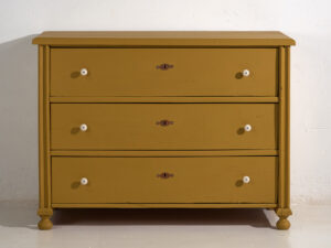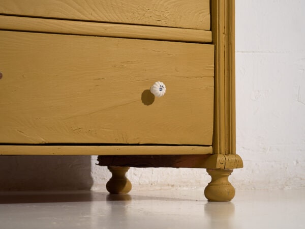 Cómoda antigua en tono mostaza con tiradores de porcelana (c.1920)