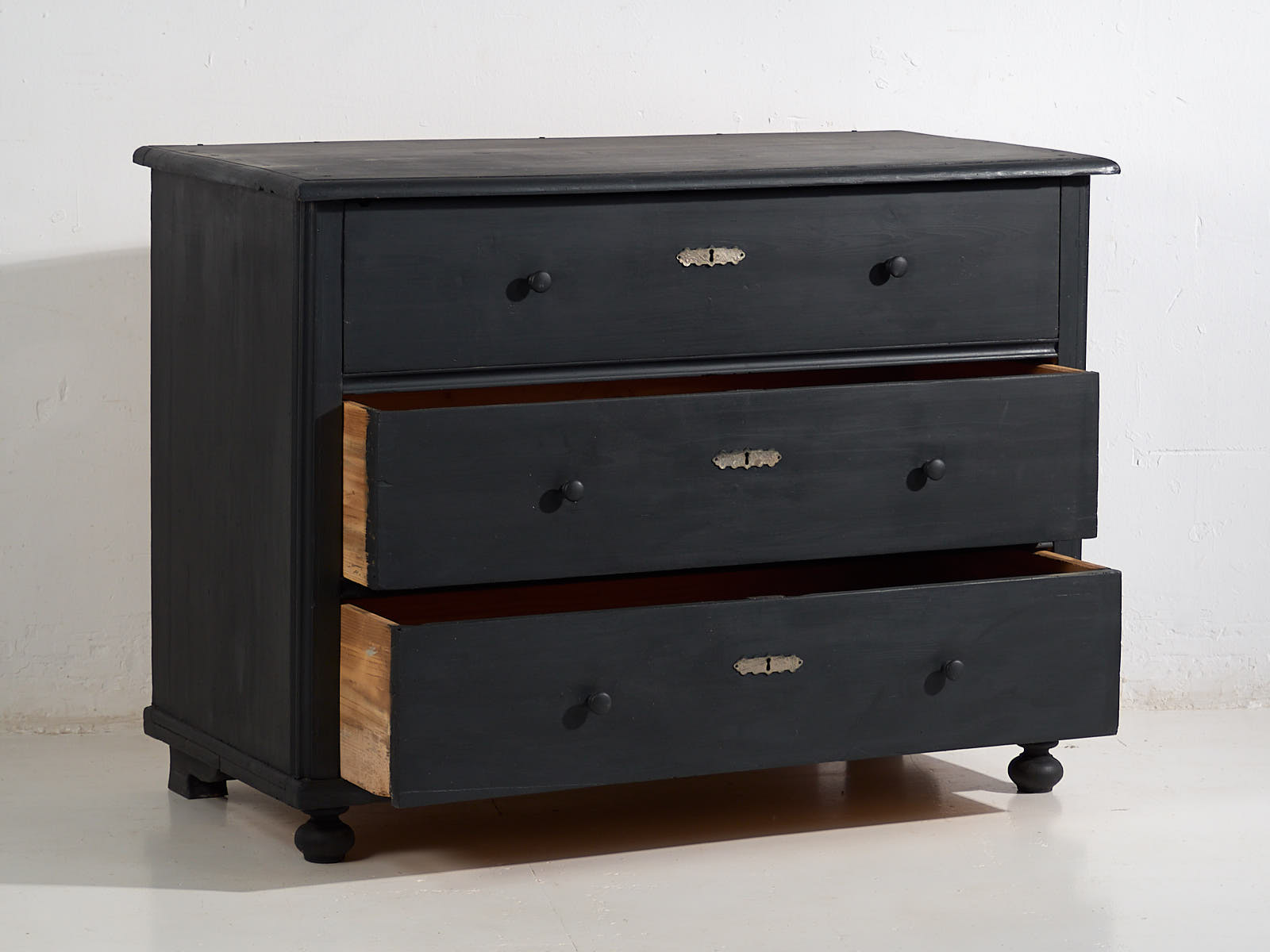 Dale un punto de originalidad a tu casa con esta pieza única, que se fusiona con el estilo contemporáneo aportando personalidad a tu casa. Esta cómoda negra antigua puede combinarla con alguno de nuestros muebles de TV o con nuestras sillas Thonet antiguas disponibles.