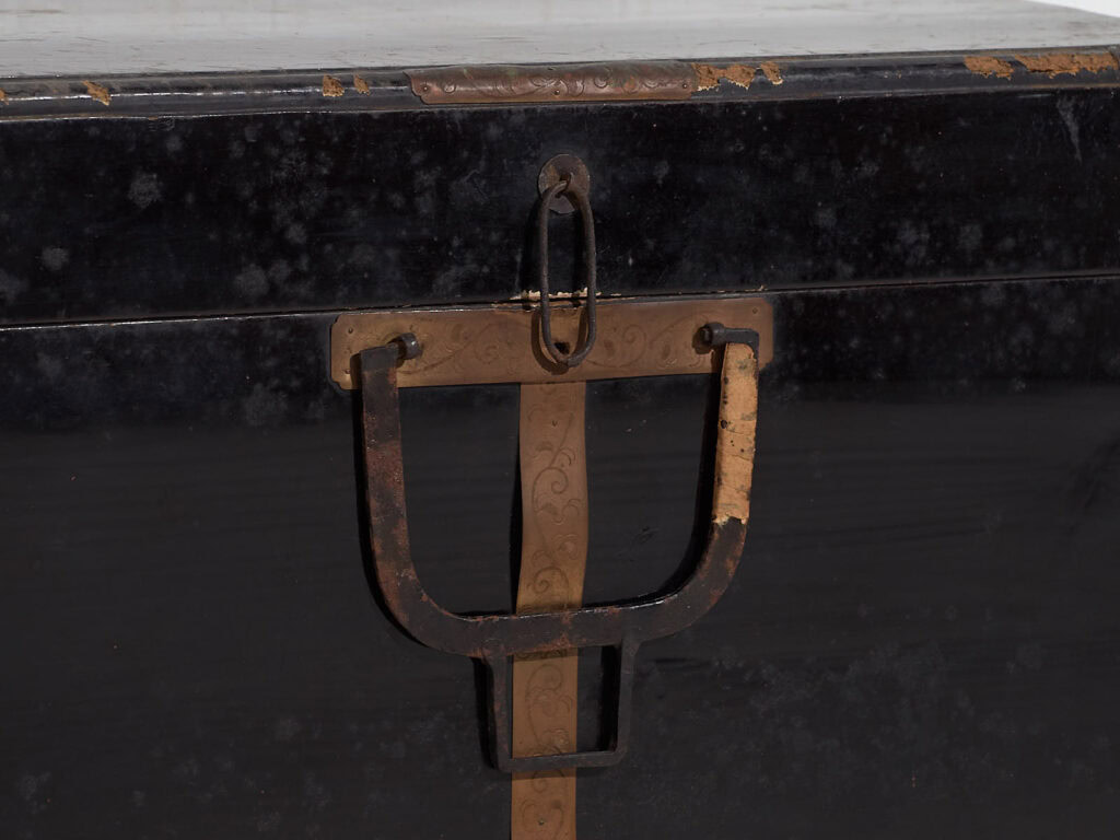 En el tránsito entre los periodos Meiji y Taishō, el mobiliario japonés comenzó a adaptarse a nuevas dinámicas de movilidad y organización doméstica. Cofres como este reflejan una cultura material centrada en la protección, la durabilidad y la eficiencia, manteniendo técnicas artesanales tradicionales y una estética contenida.