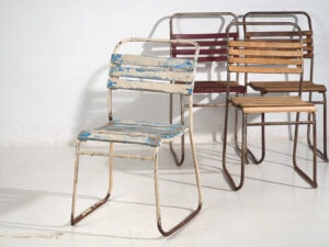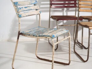 Dale un punto de originalidad a tu casa con estas piezas únicas, que se fusionan con el estilo contemporáneo, aportando personalidad a tu casa. Este conjunto de sillas de exterior antiguas se puede combinar con alguno de nuestros aparadores con nuestros cubos de metal antiguos disponibles.