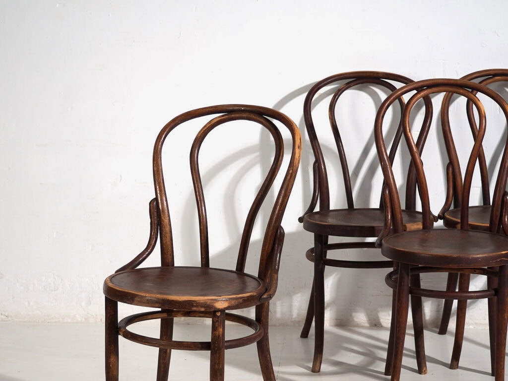 Dale un punto de originalidad a tu casa con estas piezas únicas, que se fusionan con el estilo contemporáneo aportando personalidad a tu casa. Este conjunto de sillas antiguas de madera curvada puede combinarlo con alguna de nuestras cómodas o con nuestros baúles antiguos disponibles.