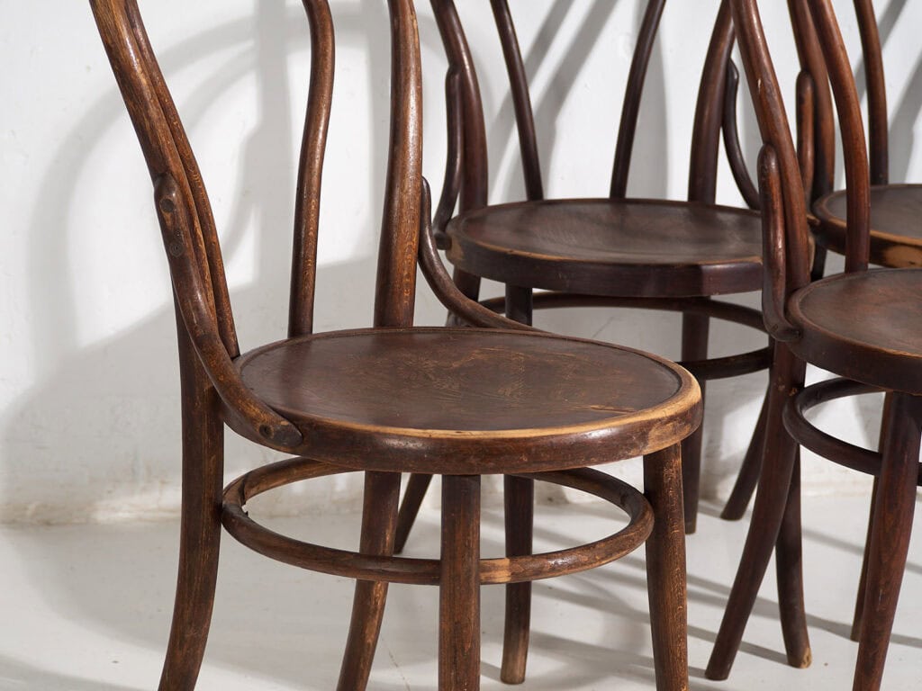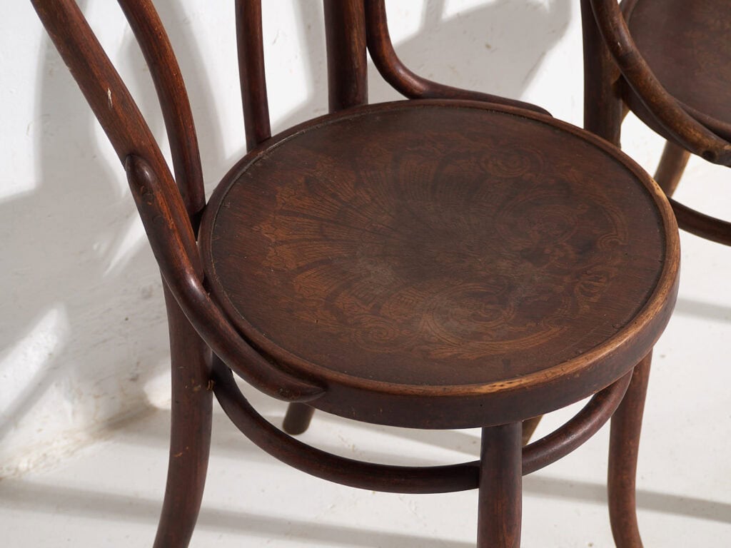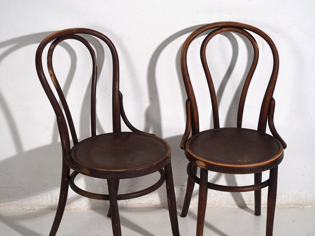 Sillas antiguas de madera de estilo café parisino (c.1920)