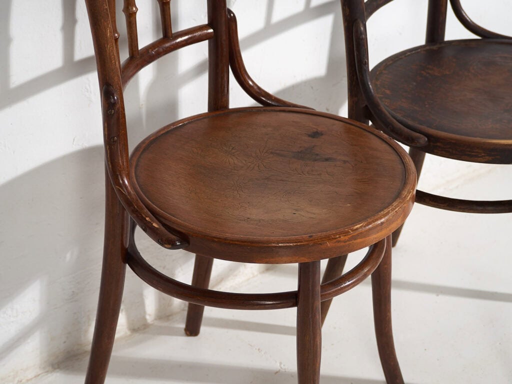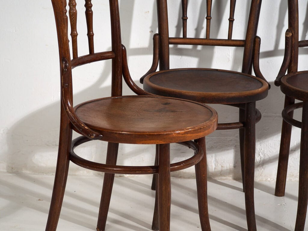 Son, sin duda alguna, verdaderas sillas Thonet, aunque ningún sello ni marca venga a dar fe de su autenticidad.