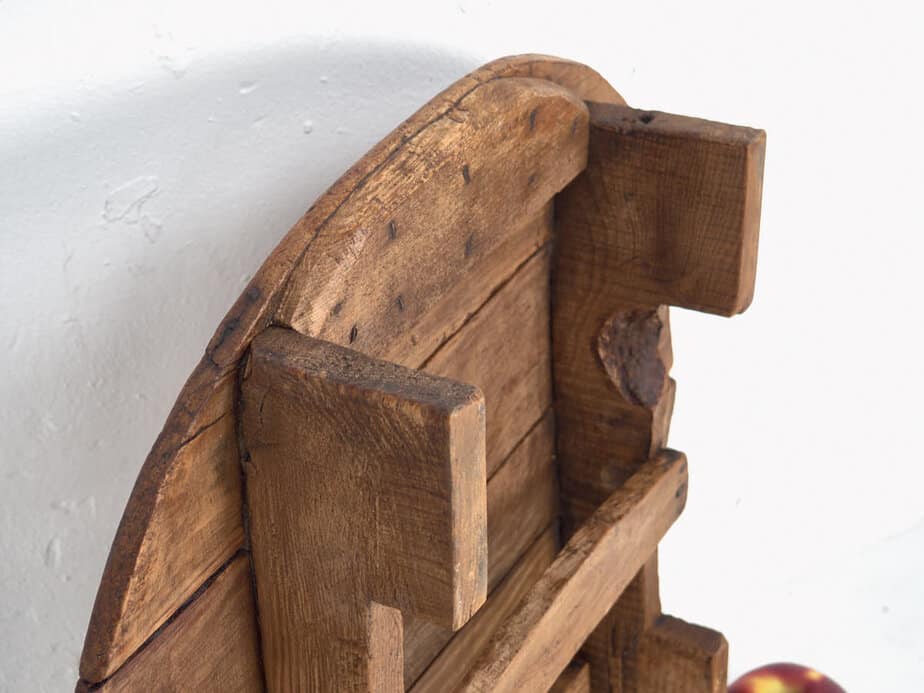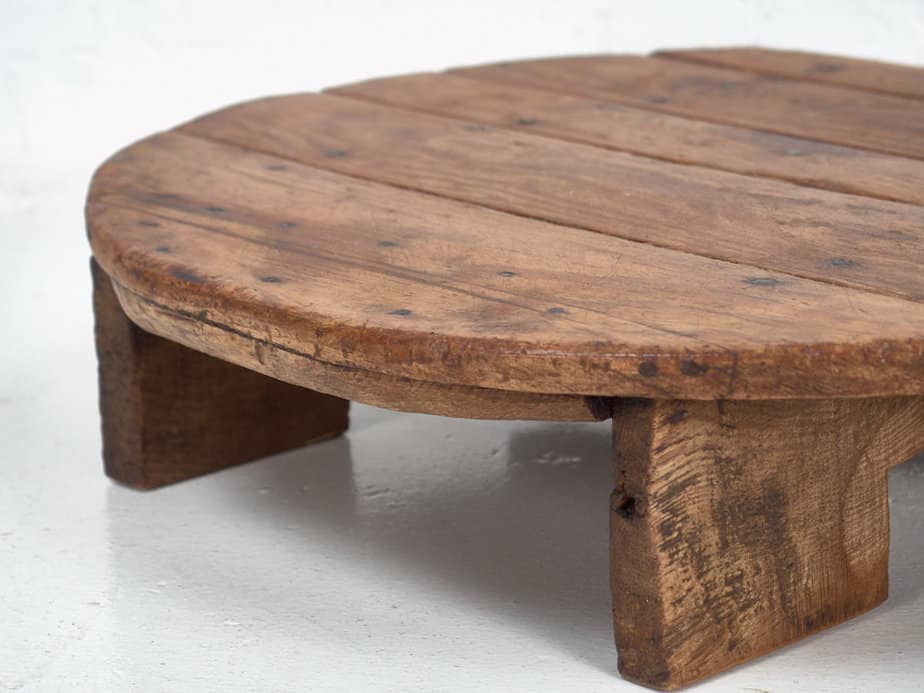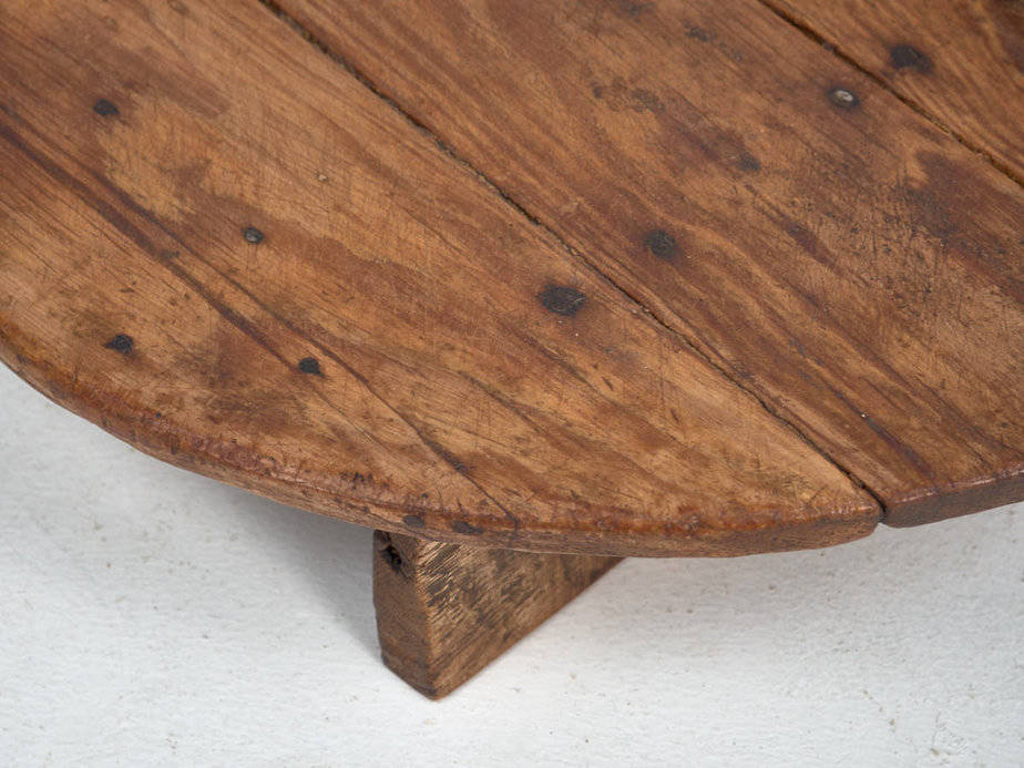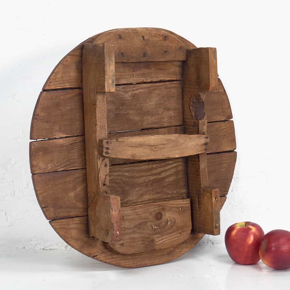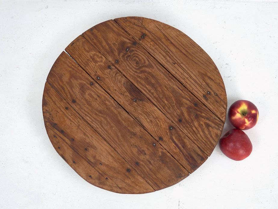 Tabla de cortar quesos antigua redonda con patas de madera (Francia, c.1920)