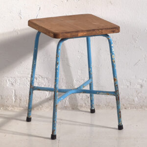 Sus pequeñas dimensiones le hacen manejable y funcional para distintos espacios y situaciones cotidianas. También os recomendamos nuestras mesas antiguas como complemento perfecto para este taburete industrial vintage.